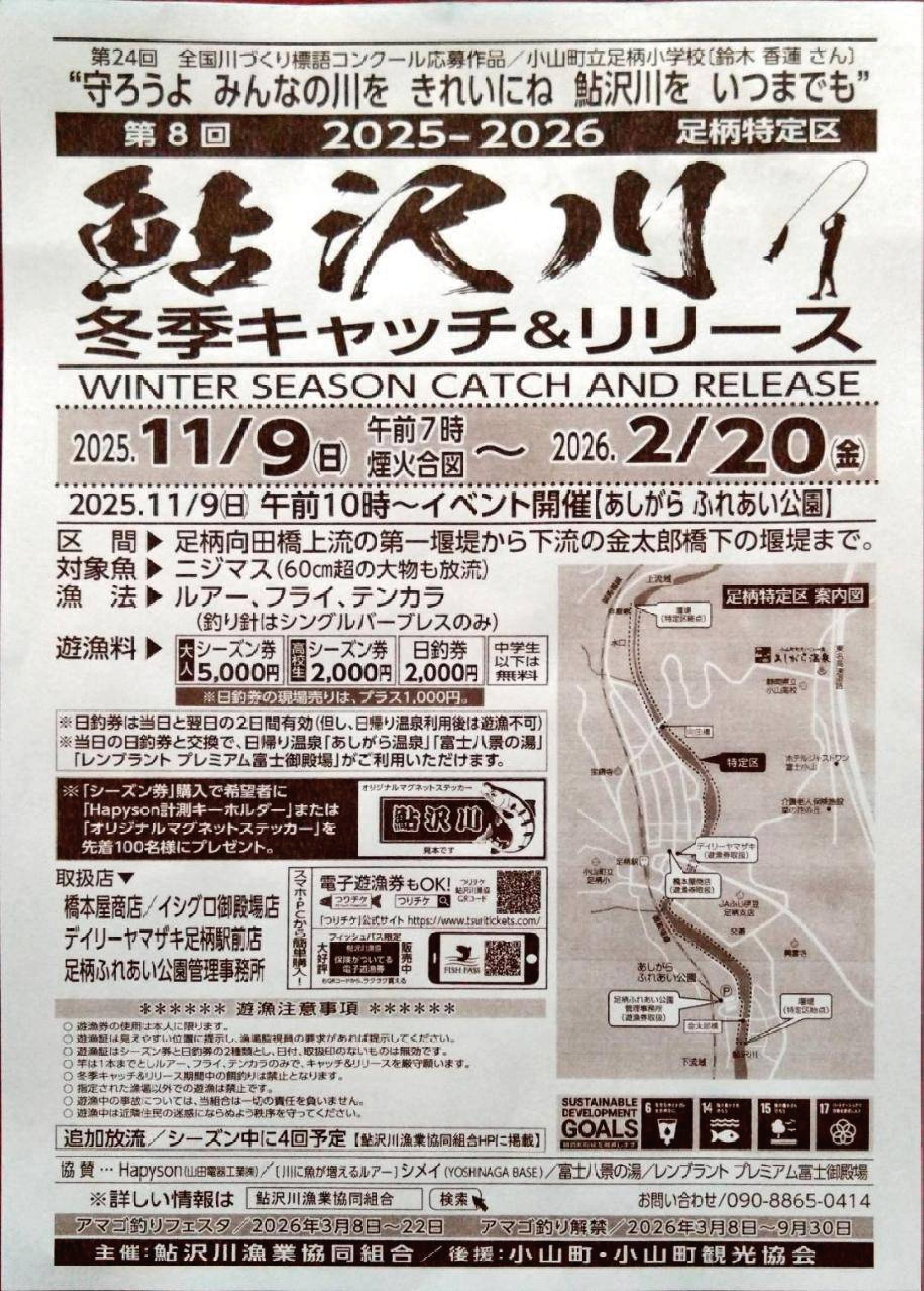 2024年11月10日~2025年2月20日の間、冬季キャッチ&リリースが解禁されます。