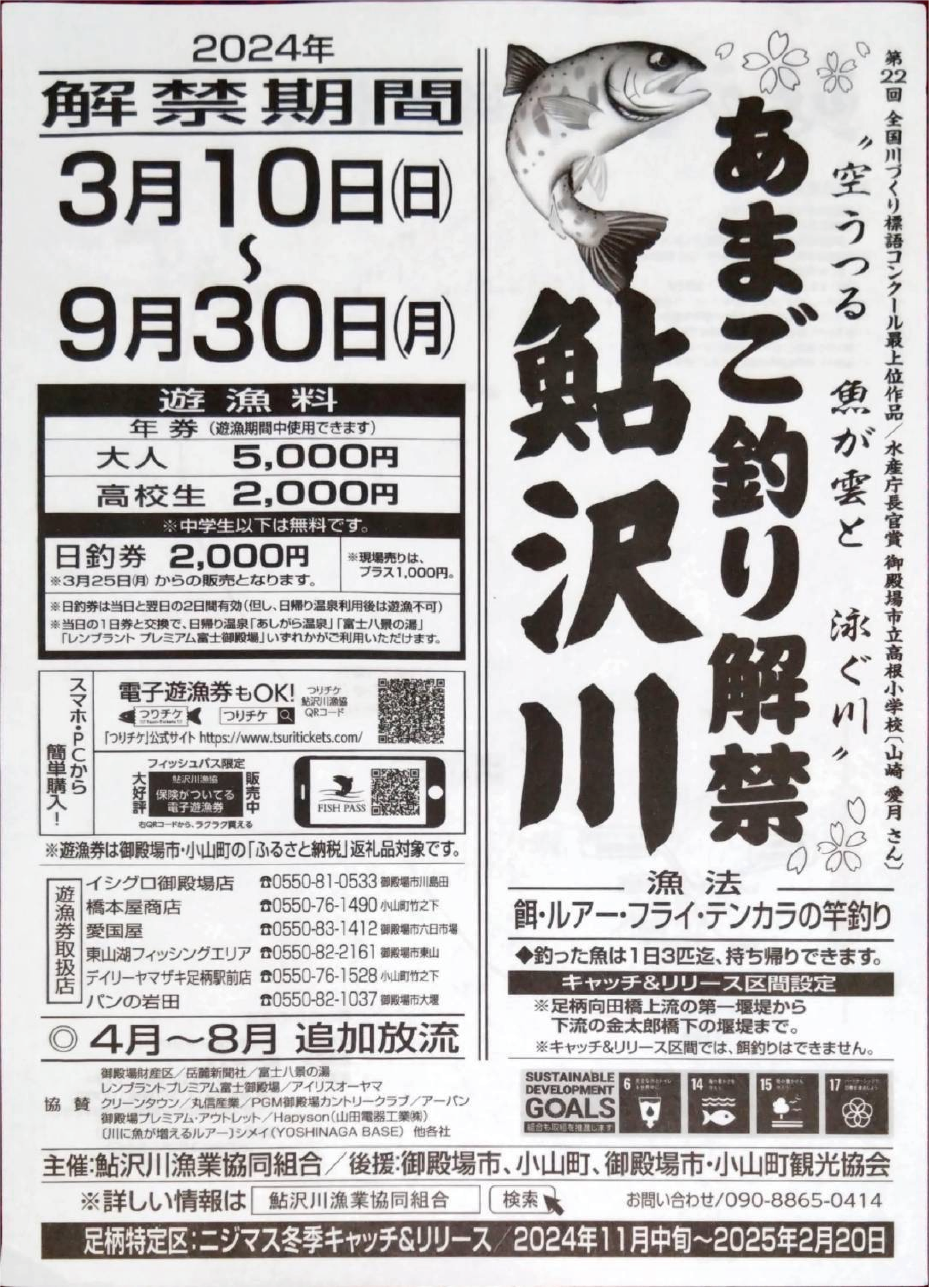 2024年3月10日~9月30日の間、アマゴ釣りが解禁されます。